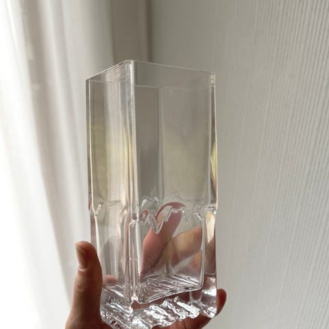 Raito maljakko, Iittala, Tapio Wirkkala, 1977-80, paino ,1,3 kg, Kork 17 cm. Yhdessä kulmassa särö, näkyy kuvassa suurennettuna, muutoin kirkas. Siksi edullinen hinta. Kouvolan keskusta