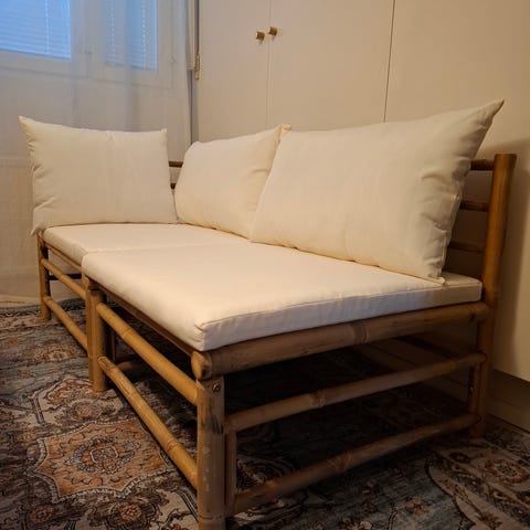 Leijuva sänky parvekkeelle tai terassille. Ihana esim. hyttysverkon kanssa. Patjan koko 100×200cm, sängyn kokonaiskoko n. lev 120cm x pit. 210cm. Patja tulee mukaan.