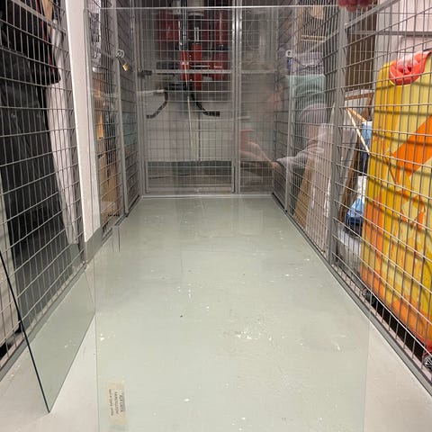 Ns. Maitolasia harmaa sävyistä laminoitua lasilevyjä,
