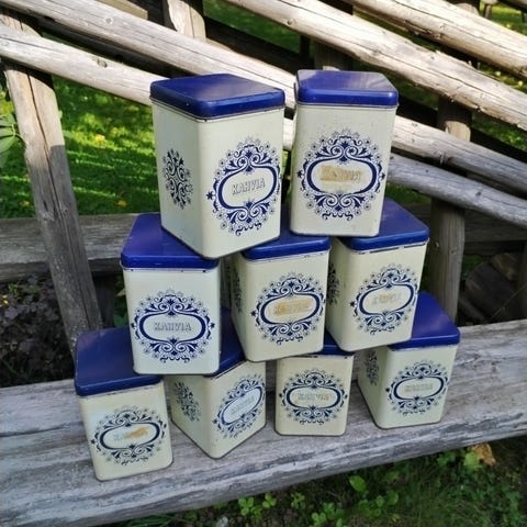 Vanhoja peltisiä kahvipurkkeja 7 kpl.