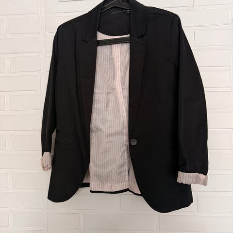 Myydään harmaa Seppälän bleiseri, koko 42. Silitys jää ostajalle, ryppyyntynyt myyntikassissa.