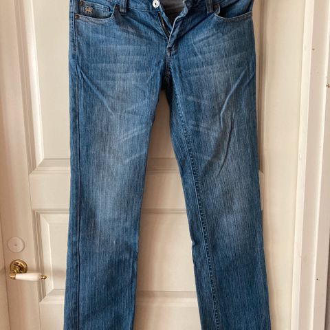 Myydään valkoiset suorat farkut koossa 36.