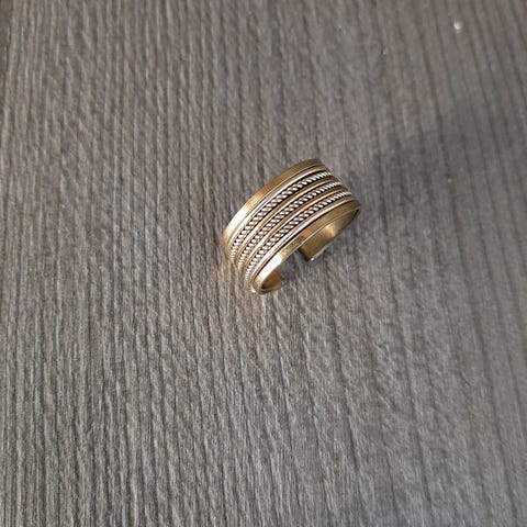 Vanha pronssinen sormus jossa ametisti. Leima Finland. Säädettävä koko.