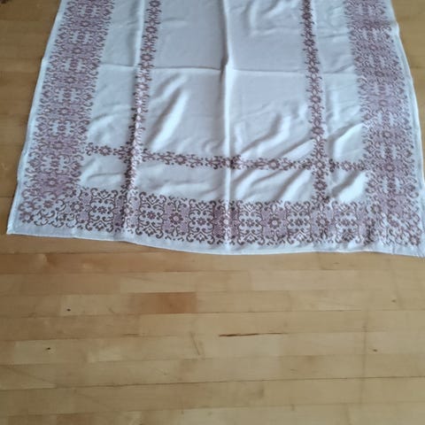 Beige/ luonnonvalkoruutuinen pöytäliina kokoa 175× 124 cm