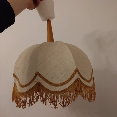 Kattovalaisin 1950-luvun lopulta 30€, afrikkailaistyylinen kattoblafondi 8 €. Lisäksi pöytälamppuihin kuvut yht. 4 €.