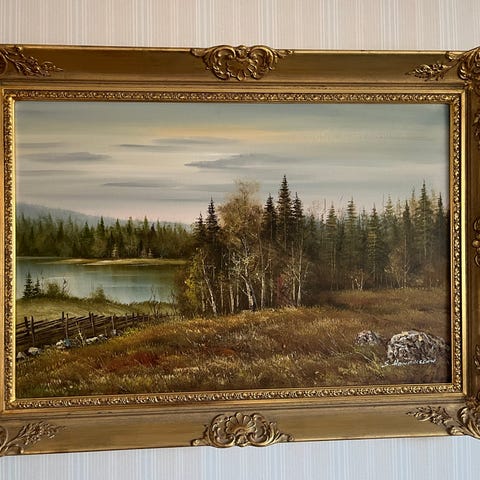 Myynnissä järvimaisema veneellä taulu Aulangonjärvestä Hämeenlinnasta. Signeeraus Raudsepp. Leveys 78cm, korkeus 58cm