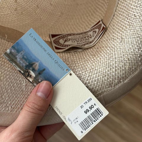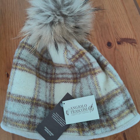 Aito Emporio Armani Hattu. Koko 57. Tumma beige-tumman ruskeilla teksteillä.