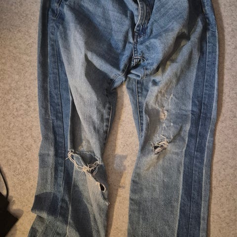 Vihreät käyttämättömät, mutta pestyt vigreät boyfriend viisitasku farkut. Takavyötäröllä säädettävät tampit. Kapenevat lahkeet ja löysä malli.. Kahdet samanlaiset myynnissä. 20 €/kpl.