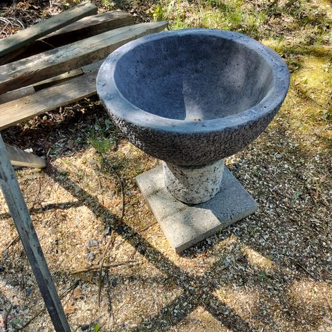 Myydään lintujen juoma-allas. Betonivalmisteinen ja pinta lasitettu. Koko n. 60x40cm.