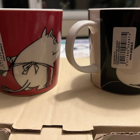 Yhden Muumimukin hintapyyntö on 89 euroa. Muumikulhoja on myynnissä neljä kappaletta toisessa ilmoituksessani. Yhden kulhon hintapyyntö on 39 euroa.