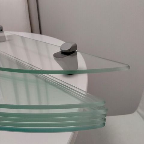 Eri kokoisia hiottuja lasihyllyjä, siistejä ja ehjiä, osassa etukulmat pyöristetty ja osassa ei. Koot vaihtelevat isommasta pienempään ja osassa erot vain muutamia senttejä. Esimerkki kokoja: 88cm x 47cm, 98cm x 35cm, 90cm x 27cm. Paksuudet 5-7mm.