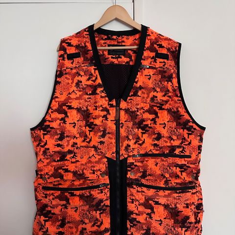Liivi on kokoa 4XL. Liivi on revennyt taskun saumasta, ja toisessa alku.