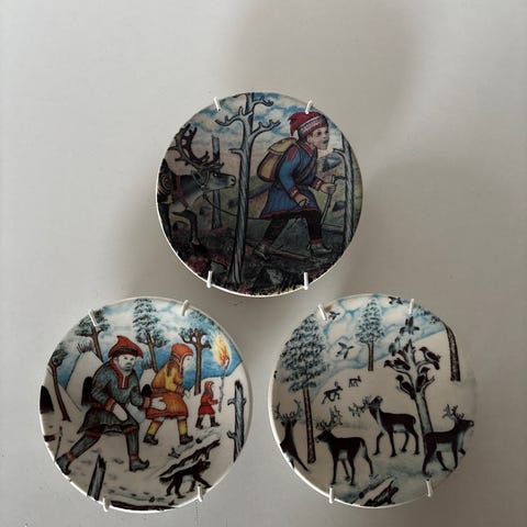 Arabia Lautanen Valkoinen/Sininen Posliini valmistus 11-68, on 57 vuotta