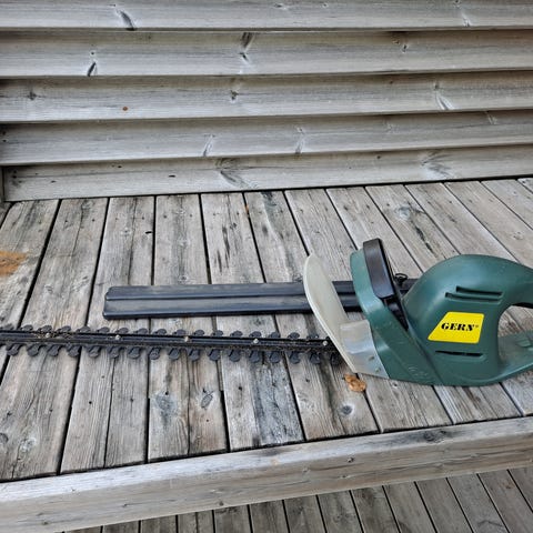 Myydään toimiva Black & Decker -merkkinen pensasleikkuri, malli GS400. Terän koko 40 cm pitkä ja 7,5 cm leveä.