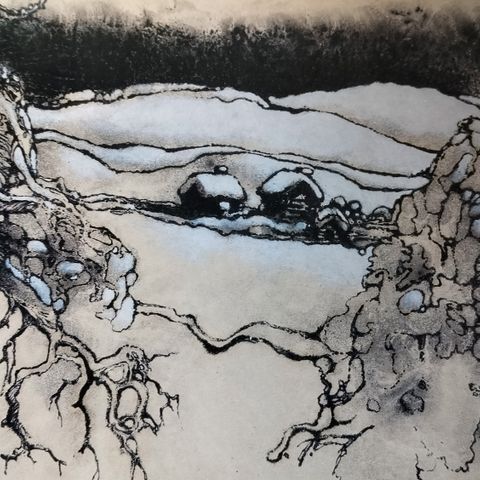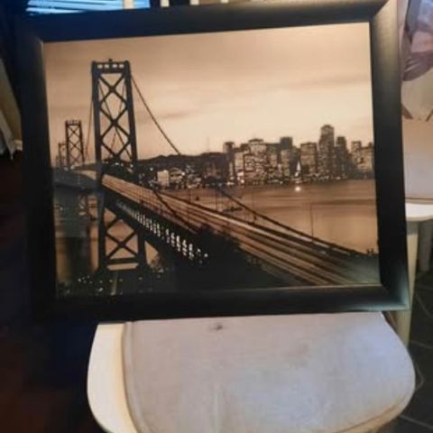 Kehyksissä lasi. Kehyksen oikeassa alakulmassa viimeisen kuvan mukainen lohkeama.