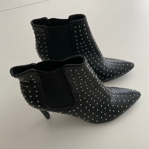 Siistit ja hyväkuntoiset gootti mustat kengät erilaisilla koristeellisellä koruilla.