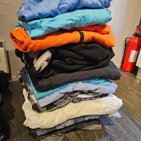 Myynnissä miesten vaatepaketti koko S-XL. Ehjiä ja siistissä kunnossa olevia. Nouto Hiirosesta. Ei postitusta. Kissatalous.
