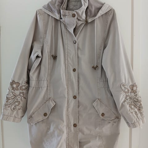 Musta, kevyt, puolitakki, irrotettava huppu, koko 42. Materiaali 100% polyesteriä, vuori 100% polyesteriä. Hinta 10 euroa. Nouto tai nouto sovitusta paikasta pääkaupunkiseudulla. Postitettaessa kulut ostajalle.