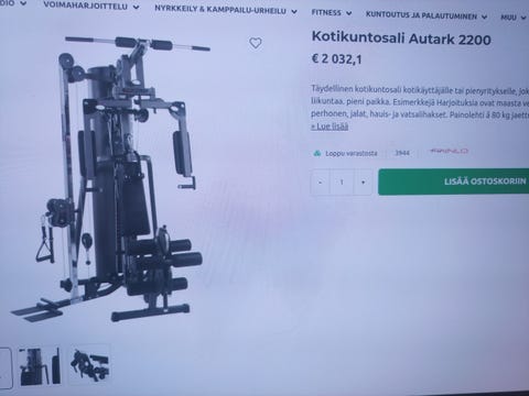 Extreme-urheilu (8)Fanituotteet (6)Golf (20)Hiihto ja laskettelu (377)Jääkiekko ja luistelu (265)Kuntosalilaitteet ja kuntoiluvälineet (61)Pallopelit (78)Pyöräily (241)Ravintolisät (1)Retkeily, kalastus ja metsästys (252)Urheilukellot ja aktiivisuusrannekkeet (23)Urheiluvaatteet ja -kengät (225)Vesiurheilu (13)Muu urheilu (190)