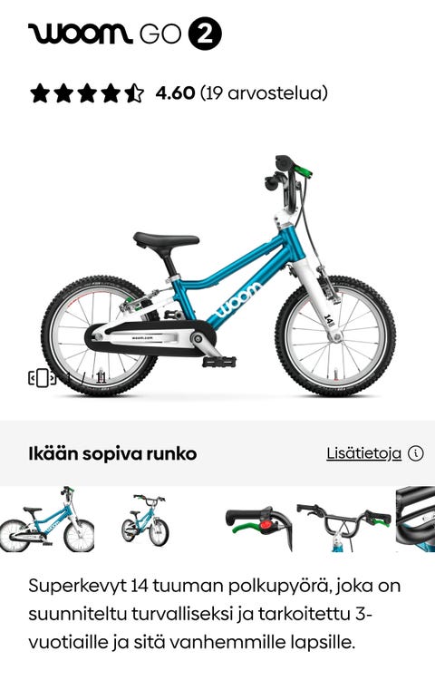 Extreme-urheilu (150)Fanituotteet (300)Golf (394)Hiihto ja laskettelu (3 412)Jääkiekko ja luistelu (2 155)Kuntosalilaitteet ja kuntoiluvälineet (1 103)Pallopelit (1 060)Pyöräily (3 186)Ravintolisät (9)Retkeily, kalastus ja metsästys (2 031)Urheilukellot ja aktiivisuusrannekkeet (230)Urheiluvaatteet ja -kengät (2 861)Vesiurheilu (358)Muu urheilu (1 171)