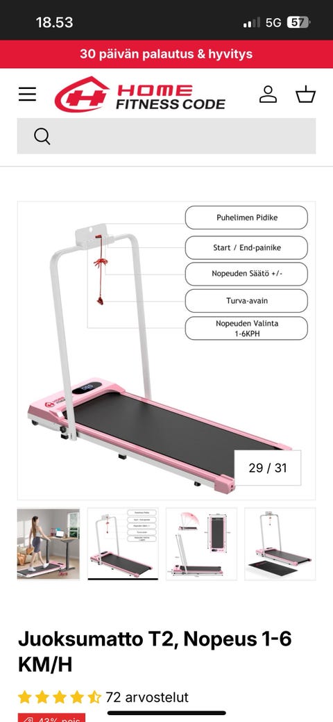 Extreme-urheilu (0)Fanituotteet (0)Golf (0)Hiihto ja laskettelu (0)Jääkiekko ja luistelu (0)Kuntosalilaitteet ja kuntoiluvälineet (453)Pallopelit (0)Pyöräily (0)Ravintolisät (0)Retkeily, kalastus ja metsästys (0)Urheilukellot ja aktiivisuusrannekkeet (2)Urheiluvaatteet ja -kengät (11)Vesiurheilu (0)Muu urheilu (8)