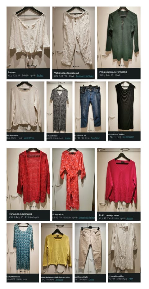 Löydä käytetyt vaatteet, kosmetiikka ja asusteet netistä! Torissa on 11 712 ilmoitusta, joissa myydään näitä tuotteita.