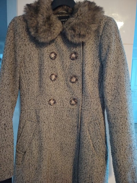 40 €Vintage ruskeaharmaa villakangastakki aidolla turkiksellaKoko SHelsinki, Tapanila, Uusimaa22.11.Osta hetiLiikkeessä oleva kuorma-autoToriDiiliLisää suosikiksi.