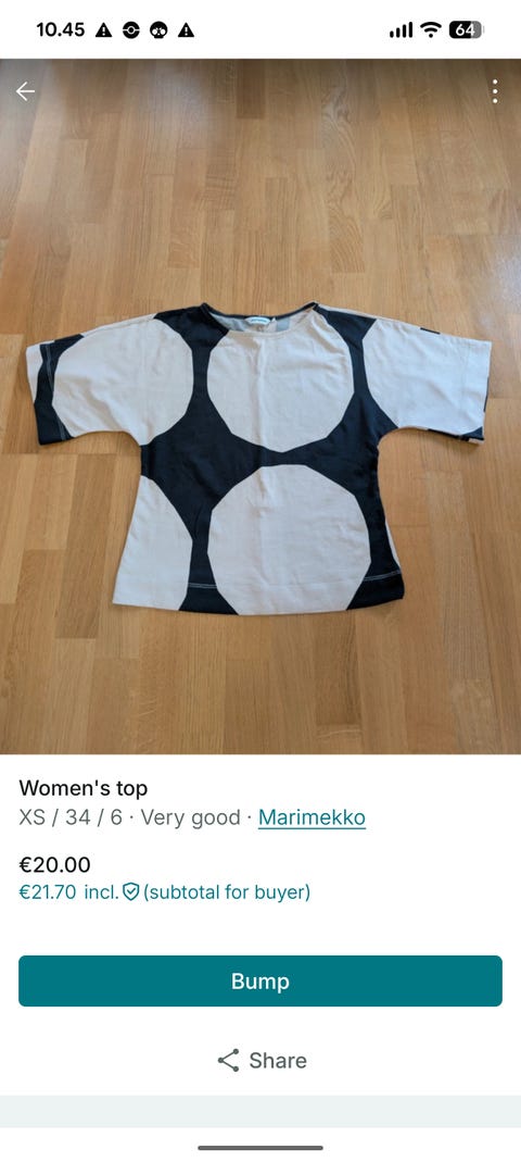 20 €Naisten Marimekko paitaKoko XS MarimekkoHelsinki, Herttoniemi, Uusimaa7 pvOsta hetiLiikkeessä oleva kuorma-autoToriDiiliLisää suosikiksi.
