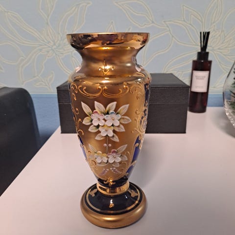 30 €Koristeellinen Murano lasimaljakko sininen ja kultakoristeinenKuopio, Särkiniemi, Pohjois-Savo7.3.Lisää suosikiksi.