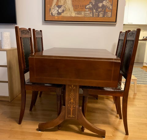 250 €Pöytä ja kuusi tuolia, puu, sininen verhoiluHelsinki, Kaartinkaupunki, Uusimaa13.1.Lisää suosikiksi.