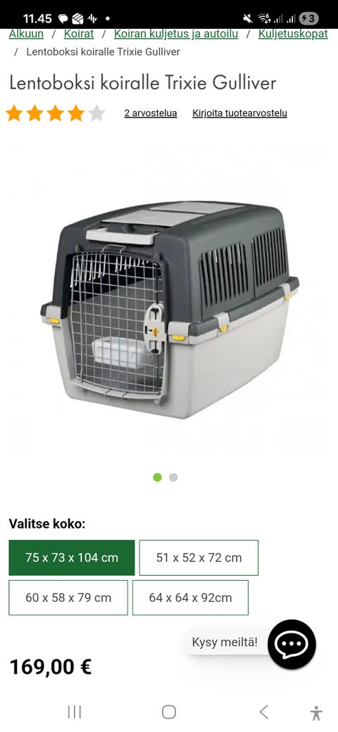 Myös monet eläintarvikkeet voi hyvin ostaa käytettynä Torista. Jos suunnittelet esimerkiksi häkin, kantokopan tai -kassin ostoa Torista, kannattaa katsoa ilmoituksesta tarkkaan häkin tai kopan koko ja ovimekanismi.