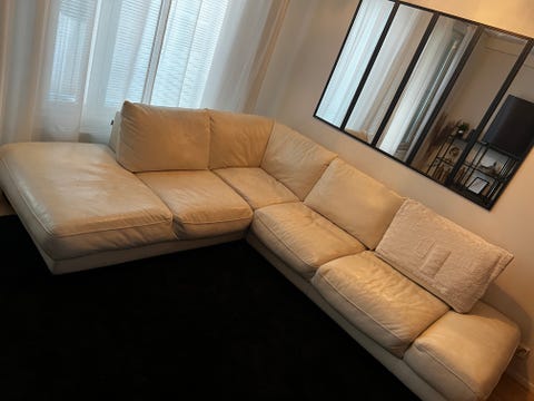 Vaalea nahkasohva