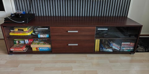 Musta tv-taso pyörillä