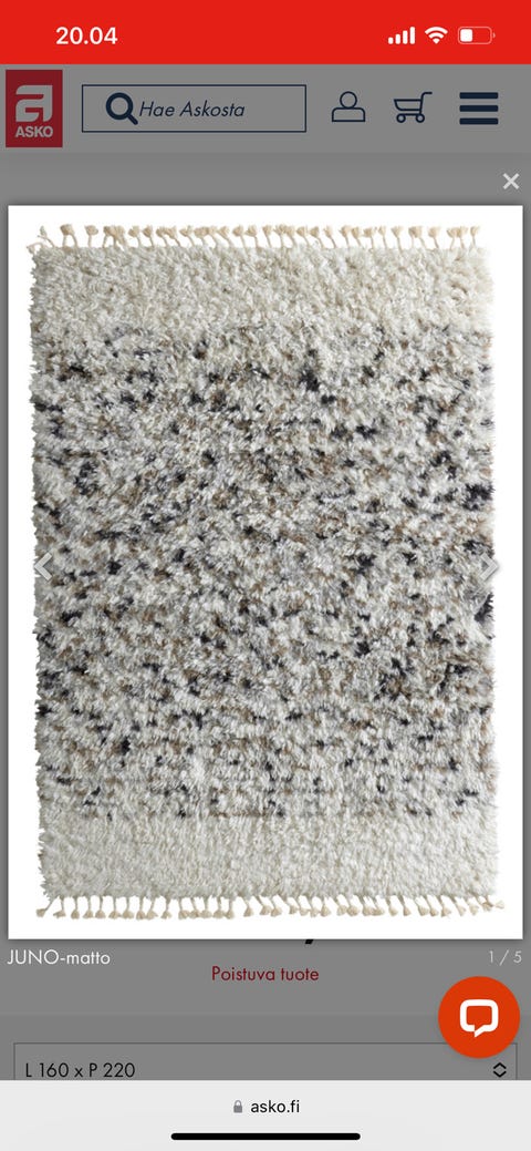 100 €Suomalainen laadukas Anno-matto kukkakuviolla 225x170 cmLahti, Ahtiala, Päijät-Häme20.10.Lisää suosikiksi.