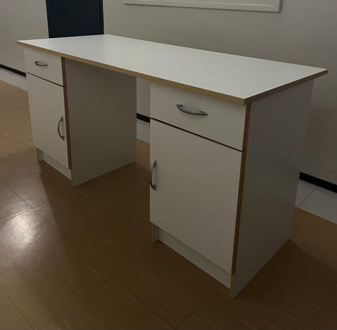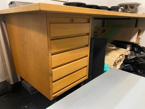 Työpöytä ja varaston hylly