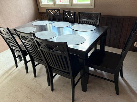 Musta ruokapöytä+tuolit