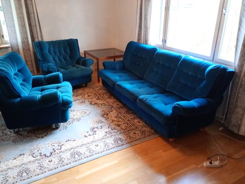 150 €Sininen samettinen sohvasetti 3-istuttava sohva ja nojatuoliLohja, Ventelä-Millola, Uusimaa15 tLisää suosikiksi.