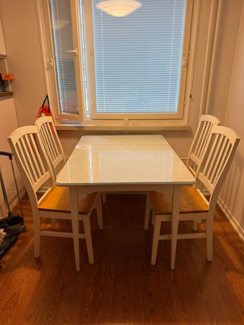 Pyöreä pöytä 4 pinnatuolilla