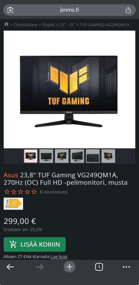 100 €Asus TUF Gaming VG249Q 24 tuuman pelinäyttöVantaa, Koivukylä-Havukoski, Uusimaa4 pvLisää suosikiksi.