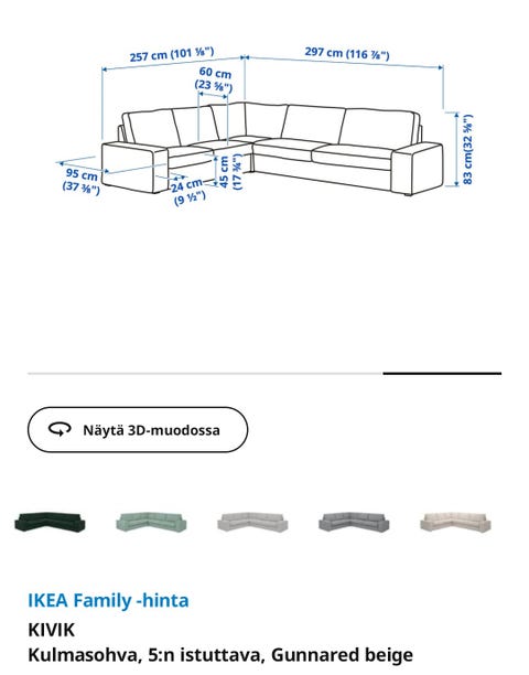 100 €V.harmaat kulmasohvan päälliset (Kivik) IKEAJyväskylä, Kypärämäki, Keski-Suomi1 tLisää suosikiksi.