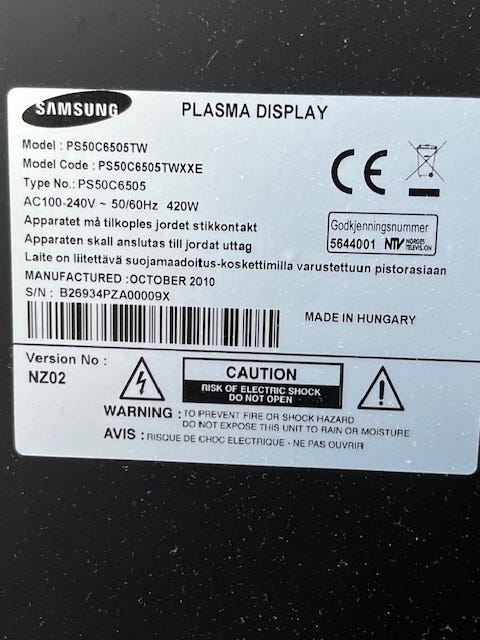 40 €Samsung PS50C6500 Plasma-televisio SamsungTampere, Olkahinen-Tasanne, Pirkanmaa1 tLisää suosikiksi.