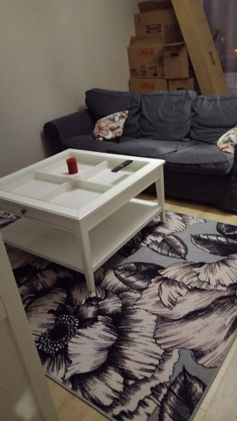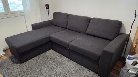 Harmaanruskea sohva