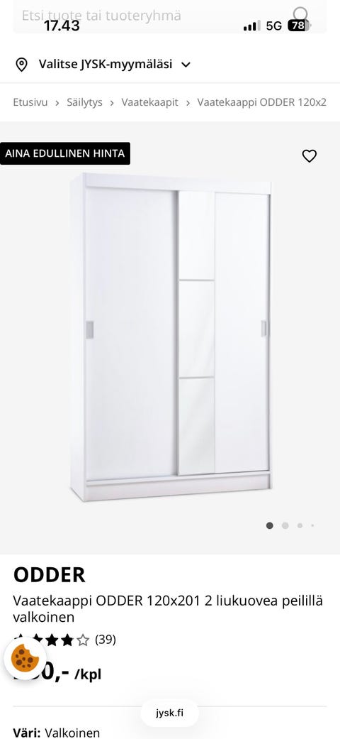 100 €Osittain koottu vaatekaappi, uusi JyskTampere, Atala-Linnainmaa, Pirkanmaa55 minLisää suosikiksi.