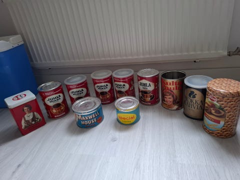1 €Vanhoja kahvipurkkeja 60-70 luvuiltaJyväskylä, Jyväskylä Keskus, Keski-Suomi4.10.Lisää suosikiksi.