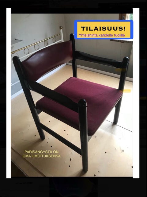 22 €Kotimaisia vankkarakenteisia tuoleja Alastek OyNurmijärvi, Rajamäki, Uusimaa6 pvLisää suosikiksi.