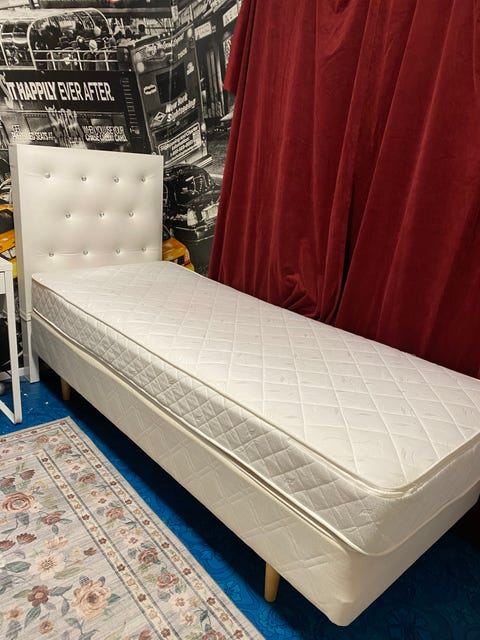 Sänky valkoisella päädyllä