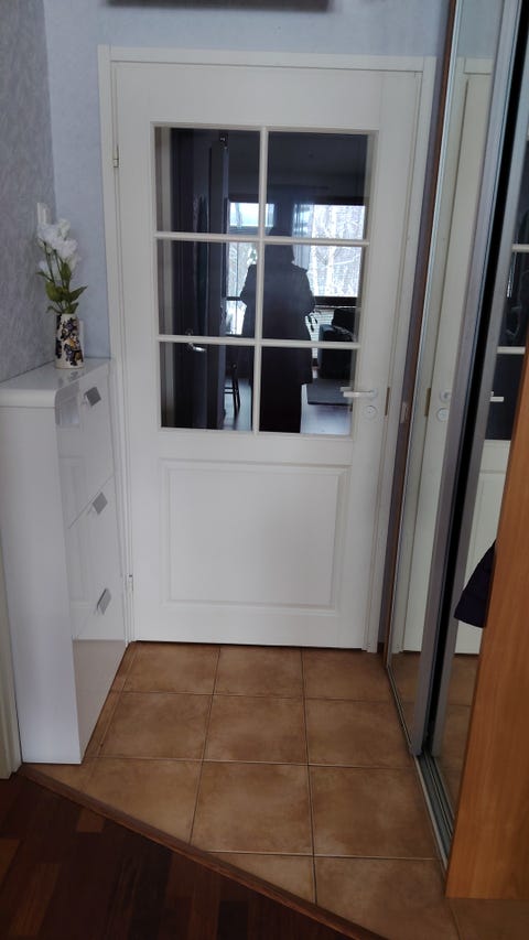Valkoinen sisäovi lasiaukolla