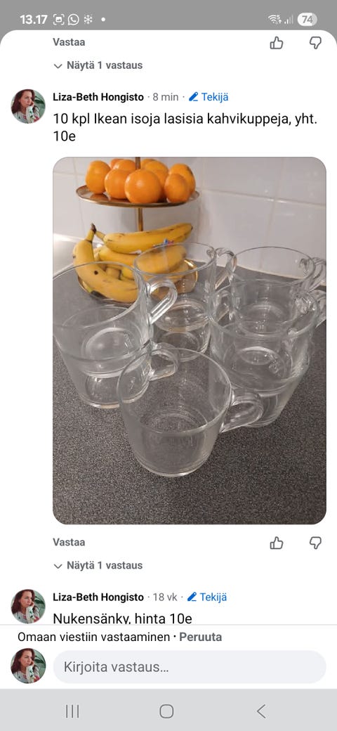 Antiikki ja taide (152)Auto-, vene- ja moottoripyörätarvikkeet (13)Elektroniikka ja kodinkoneet (256)Eläimet ja eläintarvikkeet (66)Koti ja sisustus (25 313)Lapset ja vanhemmat (4 064)Liiketoiminta ja palvelut (129)Piha ja remontointi (728)Urheilu ja ulkoilu (61)Vaatteet, kosmetiikka ja asusteet (529)Viihde ja harrastukset (329)