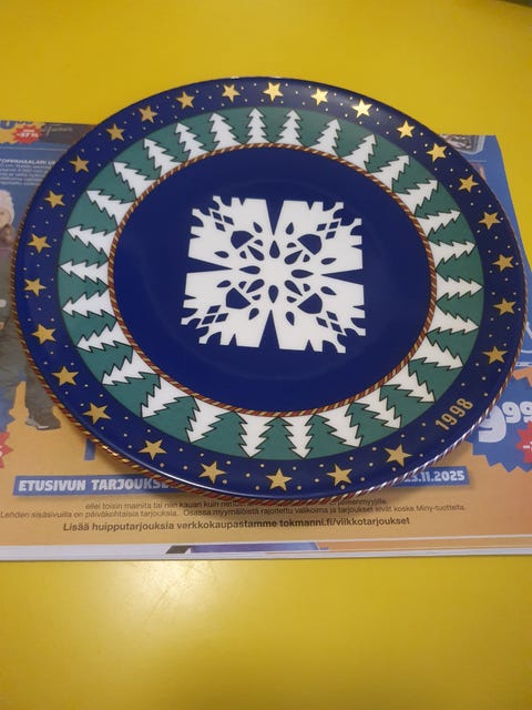 MyydäänArabia koristelautanen, Snow CrystalJoensuu, Rantakylä-Latola, Pohjois-Karjala29.11.Lisää suosikiksi.
