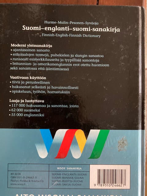 20 €WSOY Suomi-englanti-suomi sanakirja kieliopasLahti, Kartano-Paavola, Päijät-Häme16.10.Lisää suosikiksi.